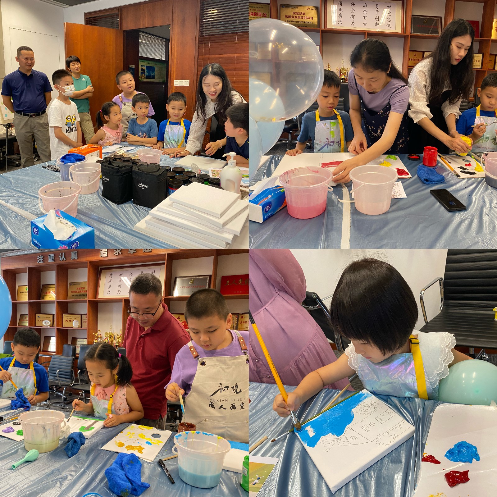 活动第一站,员工及家属来到发展中心2902室开展亲子绘画活动。家长和小朋友们共同动手,画出美丽乡村画卷、未来奇妙幻想、绿色发展畅想以及对祖国的美好祝愿。蓝天、白云、风机是描绘最多的画面,孩子们用画笔自由表达出自己对绿色低碳发展的理解。家长和小朋友们在活动过程中体验了绘画的乐趣,也增进了彼此的感情交流。